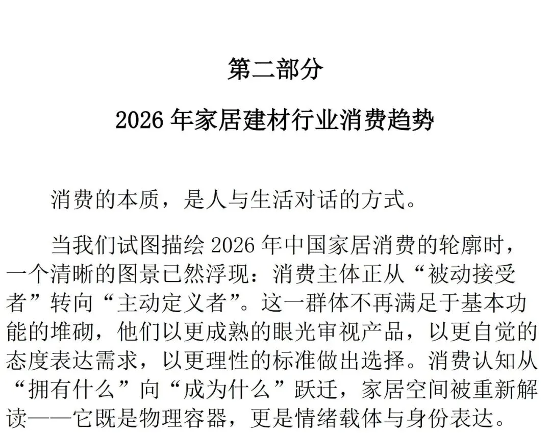 《2026中国家居消费趋势研究报告》旨在系统梳理2026年中国家居消费的核心脉络,深入剖析驱动趋势背后的深层逻辑,并为企业在新周期下的战略制定提供切实可行的行动指南,在变革中把握确定性增长机会。