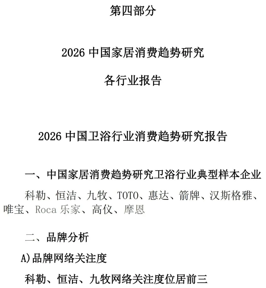 角色的转向:从“制造商”到“生活服务商”。头部企业将不再仅仅出售单品,而是提供涵盖设计、安装、智能互联、旧房改造的全链路生活解决方案。