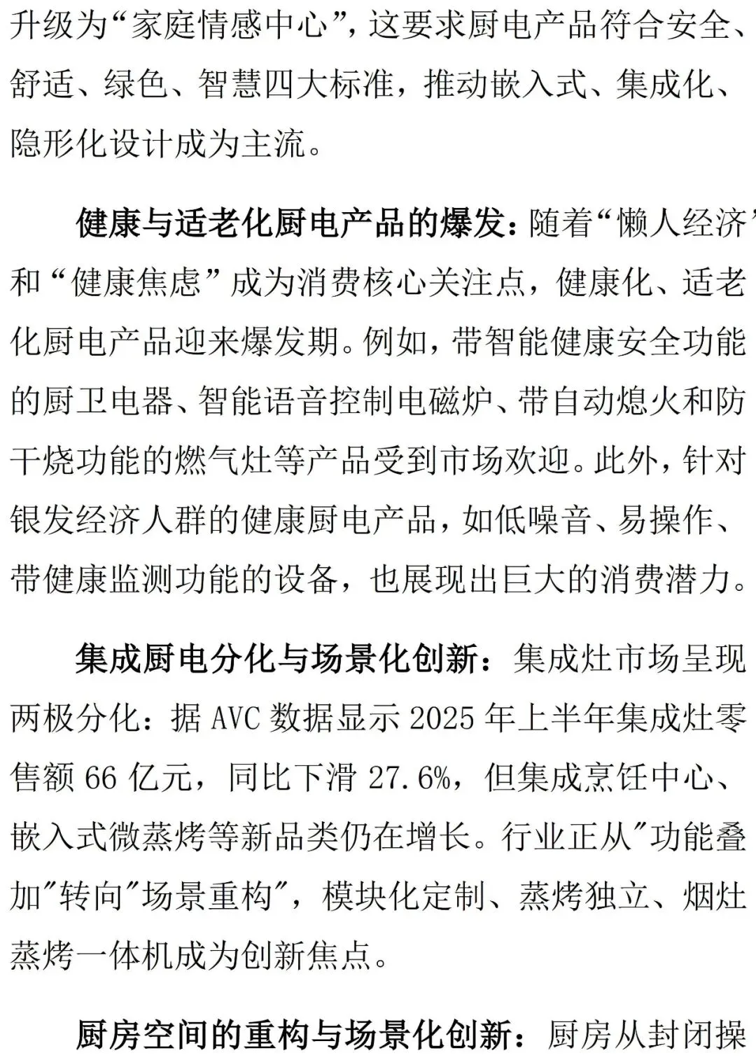 “代际共居”友好型产品:兼顾年轻人审美与老年人使用习惯的家具和家电成为新宠,例如高度可调节的橱柜、操作界面简洁的大屏智能电视。