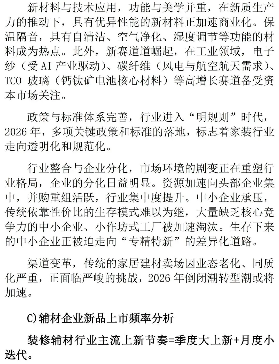 尤为值得关注的是,2026年不仅是“十五五”规划的开局之年,更是“好房子”建设从顶层设计走向全面落地的关键元年。住房和城乡建设部已将“有序推进‘好房子’建设”列为年度核心任务。对于家居建材行业而言,“好房子”绝非止步于钢筋混凝土的躯体,其灵魂恰恰在于内部装修与家居配置。因此,政策的红利将直接传导至产业端:一方面,新的国家标准《住宅项目规范》对层高、隔音、采光、适老化等提出了强制性底线要求,这将倒逼建材部品在环保、功能、耐久性上进行系统性升级;另一方面,“好房子”所倡导的“绿色低碳”与“智慧互联”,为新型建材和全屋智能解决方案创造了巨大的增量空间。
