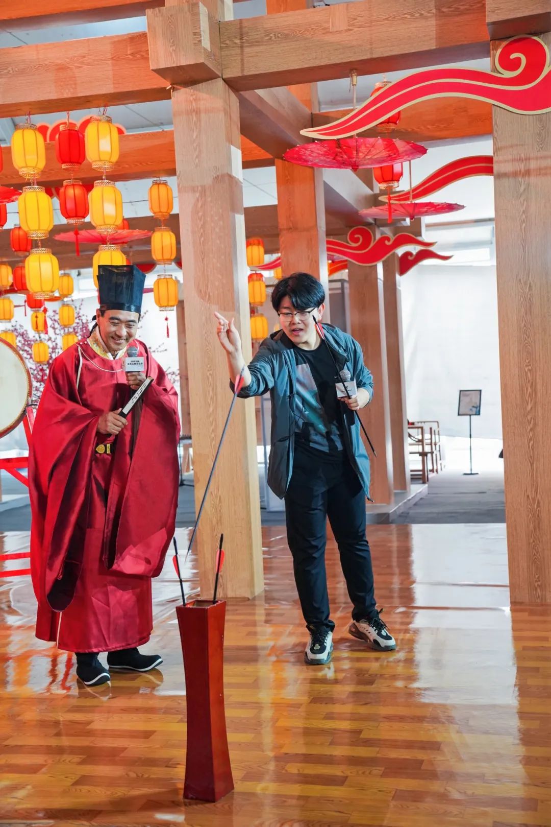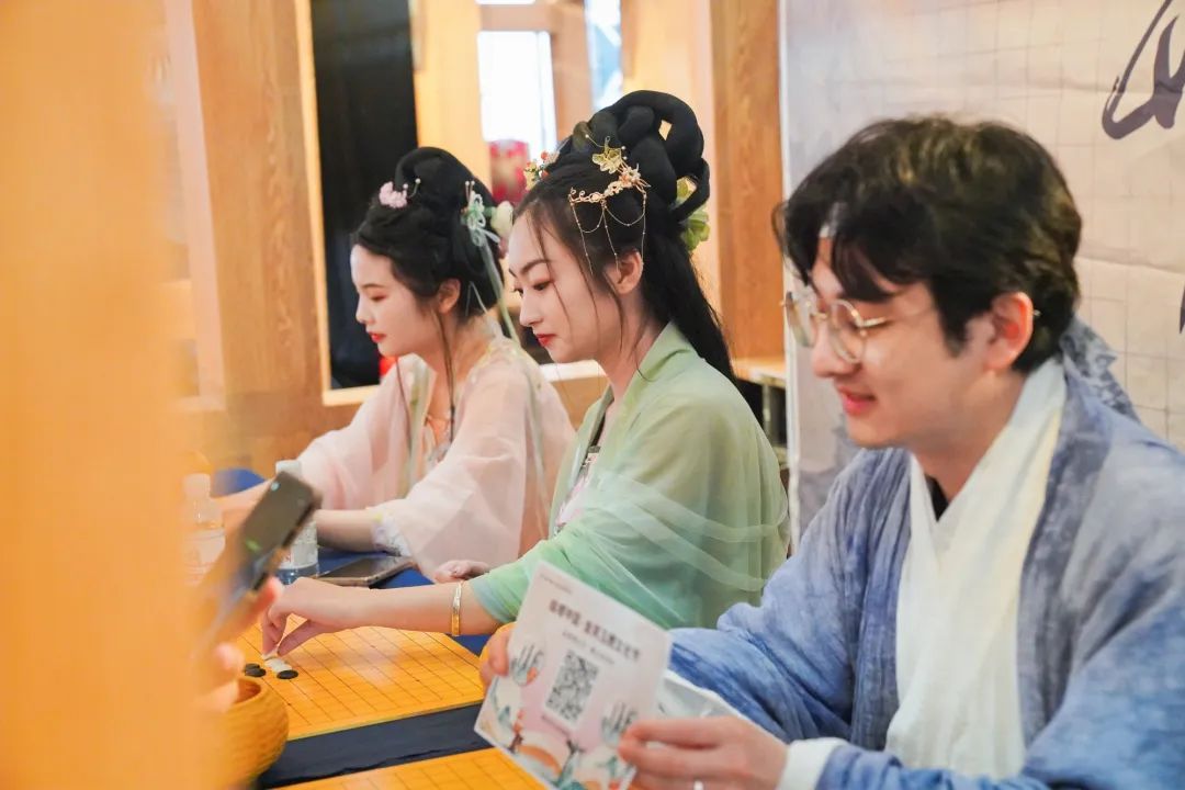 4个主题展馆设置了内容丰富、形式多样的互动体验环节,不仅有“闻香识酒”“曲水流觞”“投壶体验”“比武招亲”“有趣的酒知识”等有趣的互动环节,还有沉浸式古风剧本杀、古风射箭、画扇、对弈、书法、寻人等有趣的环节,打造沉浸式古风场景,让游客置身故事之中,感受古人诗酒风华,为市民游客在春意盎然的五一假期里,带来一场集文化展览展示、网红打卡、互动体验、休闲娱乐等于一体的文化节会体验。
