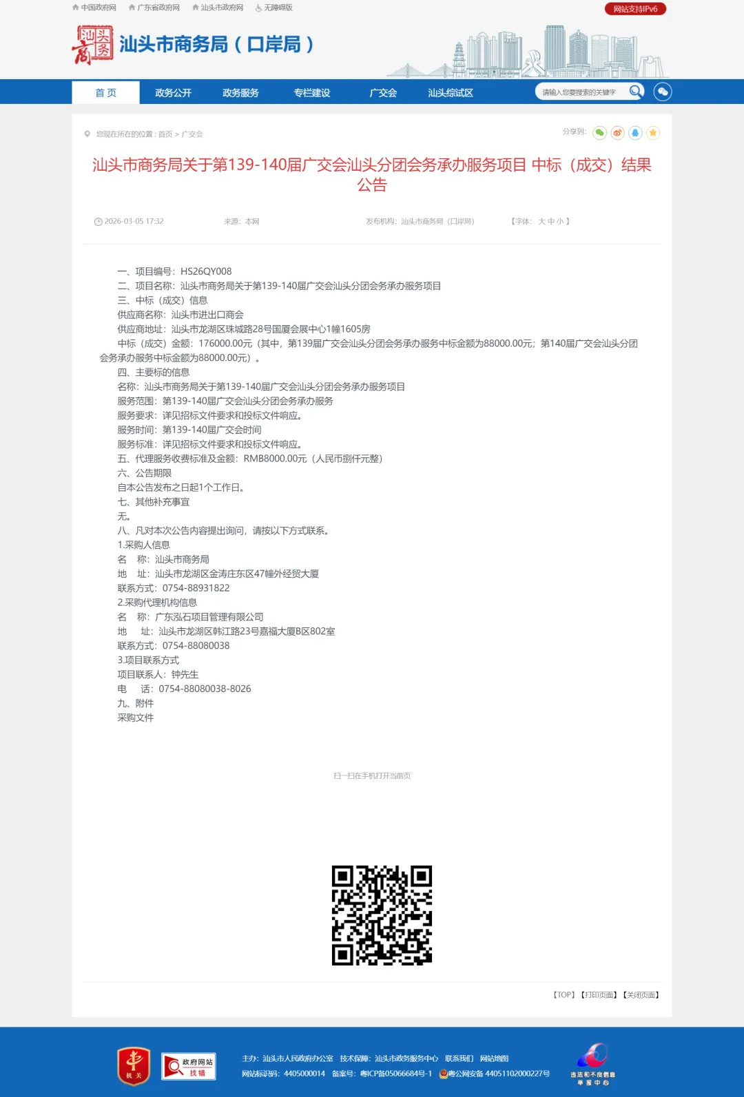 汕头市进出口商会中标139-140届广交会汕头分团会务承办服务项目工作。