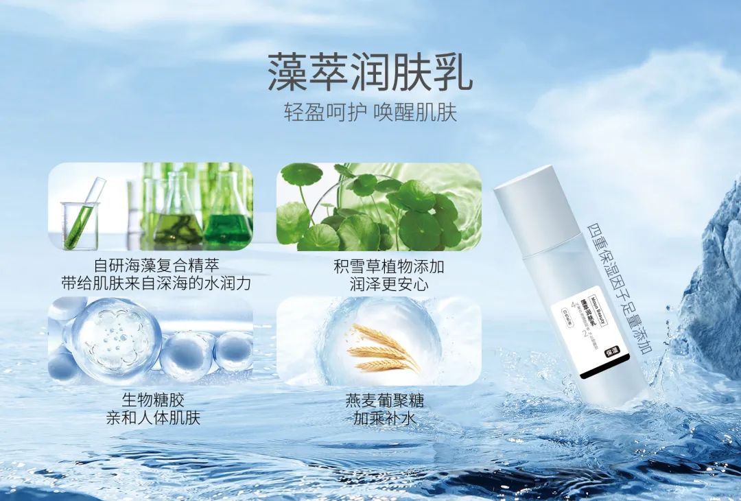 复合海藻及多种肽类成分精准配比,温和低敏,强抗老同时稳肌肤,渐进式抚平干纹细纹,促进胶原蛋白合成,无惧岁月。功效、质地随心搭配,玩出花样,多家品牌合作代工,值得关注!