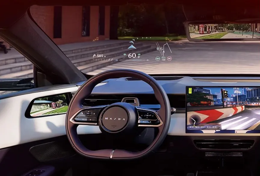 随着汽车智能化浪潮的深入,车载信息显示正经历一场从“平面”到“立体”的深刻变革。传统的HUD或AR-HUD虽能将信息投射于前路,但其单一的焦面显示,始终缺乏与现实道路深度融合的真实空间感。马自达MAZDAEZ-60裸眼3D-HUD重构人车交互,截取自长安马自达官方公众号如今,这一瓶颈正被打破。以裸眼3D AR-HUD为代表的下一代技术,通过引入真实景深、光场显示等前沿方案,让导航箭头、安全警示图标仿佛“悬浮”于真实车道之上,实现了信息与实景的更好的立体贴合效果。从华阳多媒体推出的景深式3D AR-HUD,到大陆集团“欧摩威”品牌带来的超紧凑无镜面解决方案,再到天马、德赛西威、炽云科技等厂商在光场、多层深度的技术布局——2025年至2026年,HUD产业正集体推动座舱视觉交互向更安全、更沉浸、视觉效果更好的3D时代演进。MAZDAEZ-60车机智能化升级新增「越级3D」模式融合变道引导与3D转向立方牌将导航与路况信息立体化、层次化投射。关键指示一目了然在复杂路口或立交桥3D立牌指引会悬浮于真实车道前方与实景无缝融合,直观提示每一步操作大幅提升决策效率与安全性停车休憩时,100英寸裸眼3D-HUD可化身IMAX影院级巨幕搭配23扬高品质音响系统+杜比全景声播放内置500+部3D影视内容,享受震撼的立体视听盛宴
