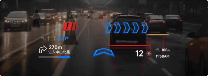 汽车3D AR-HUD技术正推动车载显示从“信息投射”迈向“场景融合”。通过裸眼3D、光场显示等技术,它能为驾驶员呈现具有真实深度感的导航箭头、安全警示等信息,使其仿佛精准“画”在真实道路上。这不仅极大提升了交互的直观性与沉浸感,更通过将ADAS功能以立体方式贴合现实视野,显著增强了行车安全。