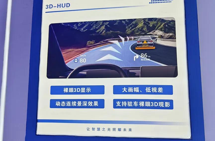 裸眼3D AR-HUD不仅是一次显示技术的升级,更是智能汽车感知环境、与人沟通的核心方式重塑。接下来,我们将深入解析各大厂商的典型产品,以及这项技术将如何彻底改变HUD的驾驶体验。欢迎识别二维码,加入艾邦HUD交流群交流补充3D AR-HUD供应商在AR-HUD方面,华阳多媒体产品涵盖TFT、DLP、LCOS等成像方案,并前瞻性布局研发光波导、裸眼3D等技术的应用,在国内率先推动HUD向全景式HUD进阶,目前已推出VPD产品并率先在2025年小米YU7车型上量产。2025年,景深式3D AR-HUD在当年的 CES及上海车展上都进行了产品展示。其在满足客户在信息承载方面的多元化需求,同时实现贴地融合效果,并深度融入自动驾驶相关功能,为驾驶员带来前所未有的驾驶体验。华阳多媒体景深式3DHUD:景深分层显示提升真实感与安全性,宽幅抗干扰模式减少视觉分散,辅助驾驶信息贴地融合增强专注度,来源华阳多媒体公众号就技术创新性而言,该产品是华阳斜投影产品的进一步升级,采用可变焦光学方案,在HUD图像中引入景深概念,使得不同距离的信息显示呈现出层次分明的视觉效果,同时图标的位移感进一步增强了沉浸感,提升了驾驶体验的真实度。该产品采用多模式的高清TFT的PGU设计方案,提供更大画幅的空间视场,结合4m到10m的真实景深,创造出宽广且灵活的视野范围。其立体重构的空间巨幅相面,也保证了信息的易读性和视觉冲击力。怡利电子在裸眼3D的HUD效果上已布局多年,怡利电子认为:3D ARHUD大幅提高驾驶安全性与体验感,将成为自动驾驶车辆不可缺的标准配备,为乘客提供个性化3D信息娱乐,3D AR技术导入多元化行车信息。与Epitone合作推出超紧凑型3D AR-HUD2025年9月慕尼黑车展,大陆集团汽车子集团全新品牌“欧摩威”在展会期间发布了一款超紧凑型3D AR-HUD。该产品凭借欧摩威在系统集成与大规模量产制造方面的丰富经验,结合Epitone的创新无镜面3D显示技术,打造除了新一代抬头显示器解决方案。其采用3D显示屏替代传统投影必需的镜面。该新款产品所需的安装空间大大减少,相比传统抬头显示器可减少多达50%。此外,该产品使挡风玻璃投射画面的空间感与可视范围大幅提升,尤其是增强现实(AR)的内容,能够更加真实地融入驾驶员视野,带来更佳的体验。该系统采用眼动跟踪技术,为双眼展示不同的图像效果,以此创造景深感。这款创新型的3D显示屏取代之前通过镜面光学系统实现虚像的方案,可实现在15°x8°,乃至更大的投影区域中,实现0.6米到80米的显示范围,相当于驾驶员视野内挡风玻璃正前方三条车道的宽度。欧摩威开发的软件解决方案AR Creator是这一系统中的核心组成部分,负责对导航、交通路况和驾驶辅助信息进行智能的视觉定位。它同时处理传感器数据,并对车辆自身和虚拟物体进行运动补偿,以生成抬头显示器中的增强现实(AR)效果。该系统中所有组件均基于现有成熟技术,可实现高效的开发周期,快速实现量产。为了让这一抬头显示器解决方案完全摒弃镜面元件,并实现由软件支持的图像输出,欧摩威与加州科技公司Epitone及其战略合作伙伴SOLUM达成合作。Epitone专注于先进的3D AR显示器解决方案,凭借其无镜显示器技术为该系统的图像输出提供基础。德赛西威AR-HUD拥有斜投影、双相面、光场显示等核心优势,产品矩阵更加多元化,从采用3.1吋屏幕的入门级AR-HUD到搭载4.1吋或5.1吋屏幕的AR-HUD 1.0版本,公司已拥有成熟的产品设计和开发能力。为给用户带来更为丰富的视觉交互体验,德赛西威还布局了可变焦斜投影光路AR-HUD 2.0,以及可实现真实物理景深贴合的裸眼3D光场技术AR-HUD 3.0。此外,为顺应无界交互的显示趋势,德赛西威推出了安全性更高、且支持偏光眼镜可视的P-HUD方案,其使用场景包括单屏替代仪表显示,A柱到A柱全景式,行车娱乐兼备的三模组方案。2025年IAA慕尼黑车展德赛西威展台,该图片来源德赛西威官方公众号2025年IAA慕尼黑车展上,德赛西威向海外客户展示了包括第五代智能座舱平台G10PH、车身域控制器iBCM2.0、48.2寸远端屏、双15.6寸mini LED Local Dimming显示屏、3D AR-HUD、全栈辅助驾驶解决方案在内的多款极具创新性的产品。利龙中宝裸眼3D-HUD技术:利龙中宝已成功研发更具前瞻性的裸眼3D-HUD技术。区别于现有的AR-HUD的平面显示,该技术将裸眼3D与AR技术融合,可使交通标识“悬浮”于驾驶员眼前,导航地图中的建筑立体呈现并随视角转动,大幅提升交互沉浸感与安全性。而在跟车行驶中,若跟车过近,屏幕上危险预警的感叹号可直接贴近驾驶员眼前。 据了解,利龙中宝裸眼3D-HUD样机已于2025年底完成,2026年将向各主机厂推广。 炽云科技SHUD(Stereoscopic HUD —— 立体视觉HUD,裸眼3D HUD),是炽云科技创新性推出的下一代HUD产品,采用双目视差原理实现动态连续景深成像的AR HUD,能够让导航箭头、障碍物警示等信息,虚像距离与呈现画面实时变化,为驾驶员提供正确和直觉的空间感知和指引,较传统HUD的平面显示或双像面显示更具空间指向性,减少误判风险。睿维视利用多焦面(MultiLayer)3D AR-HUD技术,实现具有多层深度信息的3D AR-HUD效果。多纵深成像,实现具有多层深度信息的3D AR-HUD集成自研RV Engine®算法,实现虚拟数据与现实世界的精准融合睿维视3D AR-HUD参数: