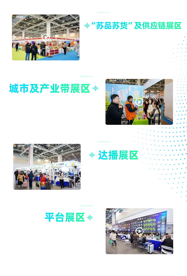 线上打造“长三角&‘苏品苏货’潮品节”,汇聚超10万SKU潮品好物,同步直播主会场精彩活动,实现“线上引流、线下转化”的双向赋能,让参展企业既能收获现场订单,也能沉淀长期线上流量,真正实现声量与销量的双重爆发!