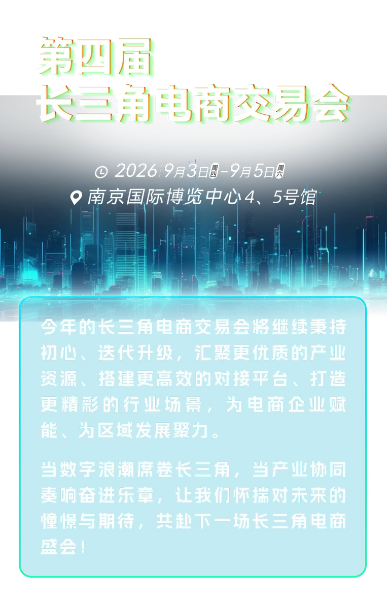 一届届盛会的迭代升级,一组组攀升的数据,一声声奋进的呐喊,都是长三角电商产业蓬勃发展的生动注脚!每一步跨越都令人振奋,每一份成果都掷地有声,每一组数字都承载着盛会的诚意与实力,更凝聚着行业各界的信任与鼎力支持。