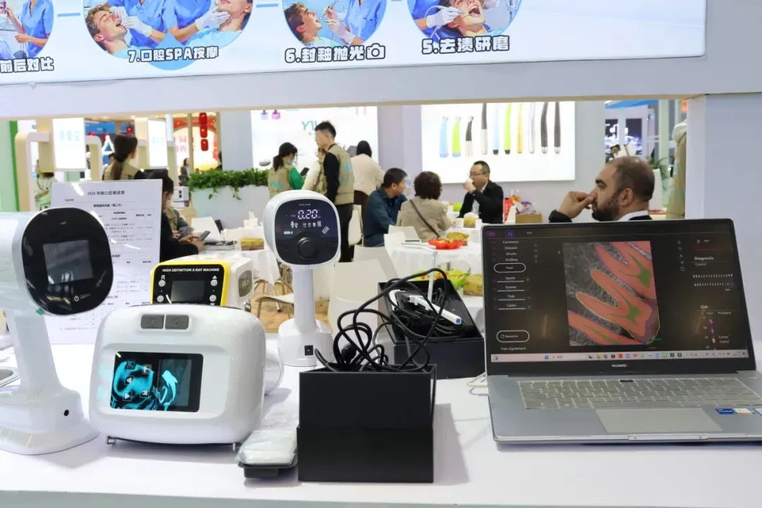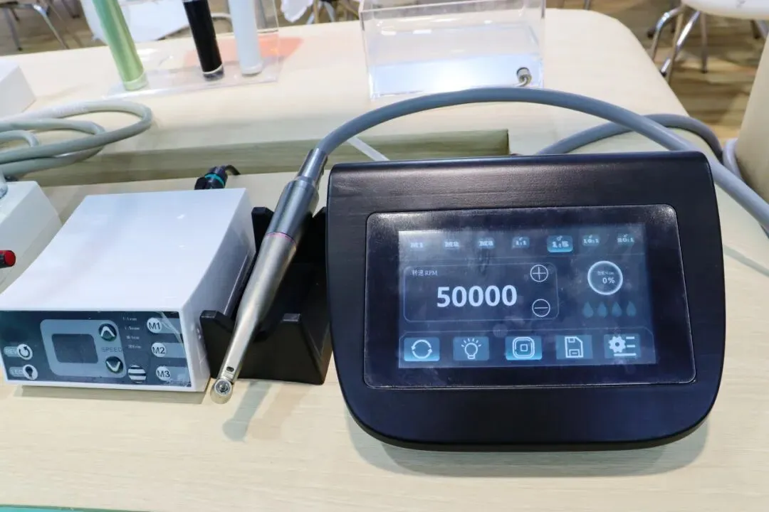研光器、牙科低压电动马达(触摸屏款)、光固化机、种植机等众多新品整齐列阵,吸引了大量专业观众驻足咨询、亲身体验。