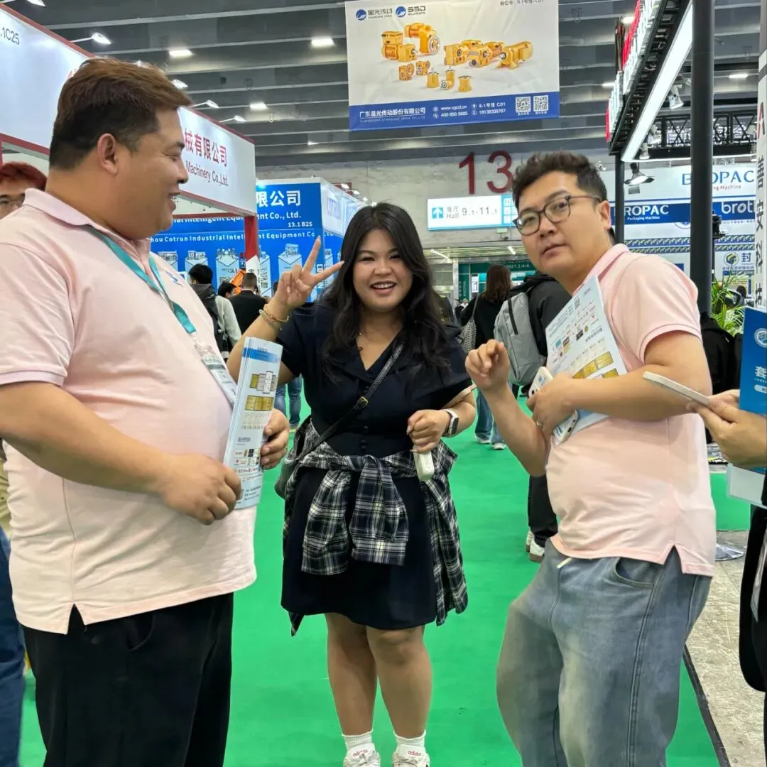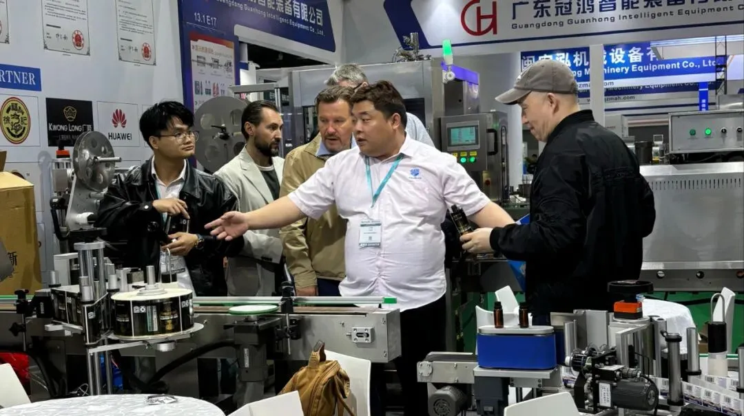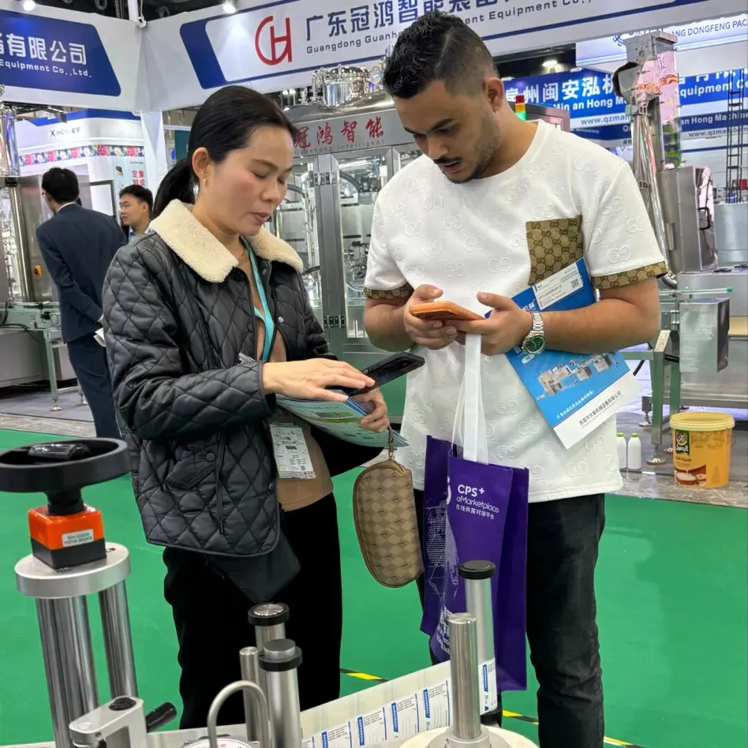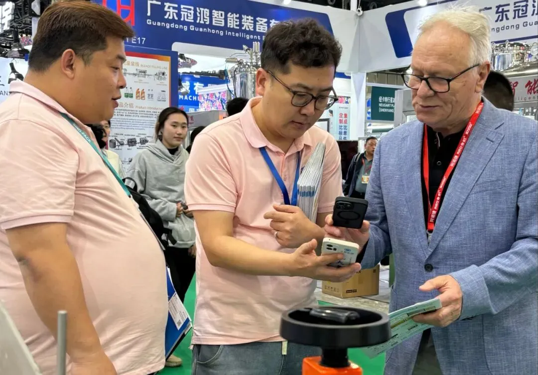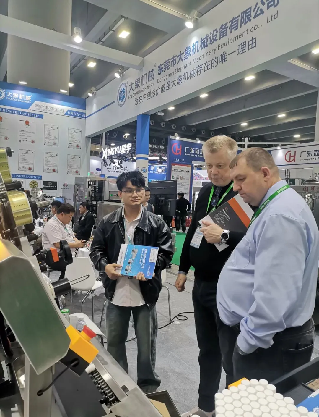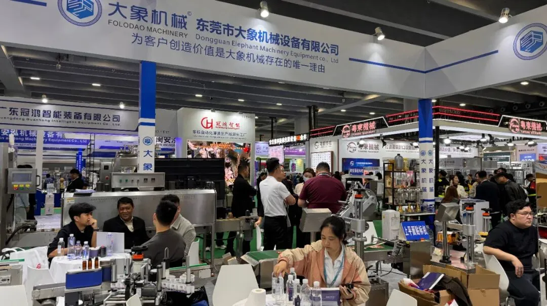 特别值得一提的是,本次展会大象机械吸引了众多海外客商的目光。来自东南亚、中东、欧洲及美洲等地的外国友人驻足展位,对我们的包装设备表现出浓厚兴趣。通过专业翻译和产品演示,我们与多国采购商深入探讨了合作可能。大象机械正以开放的姿态,加速迈向全球市场!