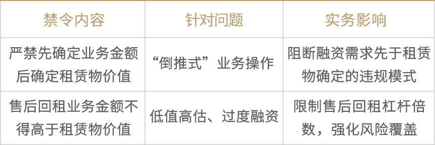 第三,“原则+规则”的层次结构。既有“依法合规、审慎经营、平等自愿、公平诚信”的原则性要求,也有“业务金额不得高于租赁物价值”等具体量化标准。