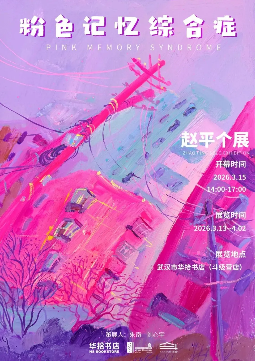 欢迎来到赵平的画展——《粉色记忆综合症》。在这里,她试图用一种“病态”的浪漫,对抗时间的流逝。用最张扬的荧光粉紫,去包裹老旧的建筑与倾斜的街道。