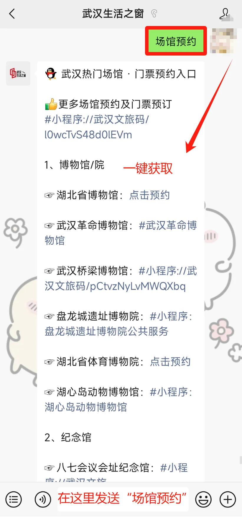 在聊天对话框发送“场馆预约”