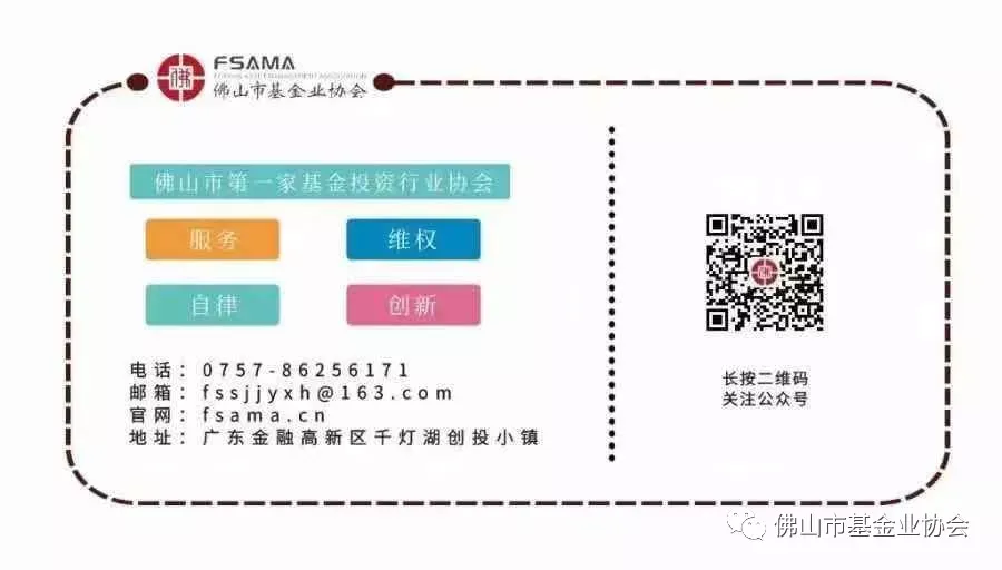 我协会成立13年来,秉持承接政府、引领行业、服务会员的宗旨,扎根佛山,携手湾区,辐射全国,致力于加强本土基金行业与国内外同行业的交流合作,研究探讨基金行业的热点问题,向政府主管部门提供合理化建议、调研报告及行业实时动态,维护全体会员单位的共同权益,充分发挥桥梁纽带作用,以促进全行业健康可持续发展为己任。