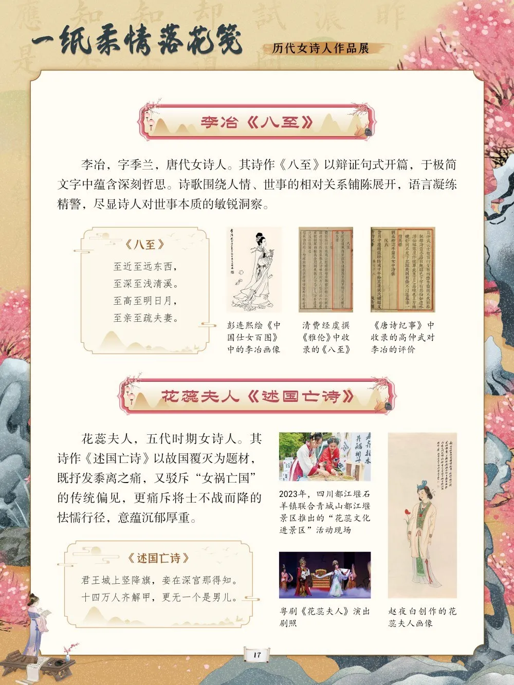 中华优秀传统文化是中华民族的精神命脉,是涵养社会主义核心价值观的重要源泉。在中国文学的璀璨星河中,历代女诗人以独特的生命体验与文学才情,为这条精神命脉注入了温润而坚韧的力量。她们挣脱时代的束缚,以诗为言、以笔为心,将闺阁情思、家国之念与觉醒之志凝于笔墨,书写了中华文脉中不可替代的璀璨华章。