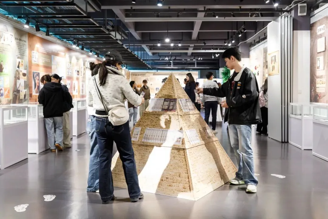 石燕也介绍道,策展围绕的核心问题就是如何让校内师生和社会大众愿意看、能看懂。以此为出发点,策展团队针对不同群体设置了不同的解读手册,比如中学生拿到的手册是简化版且语言活泼的,成年观众则是完整且信息详实的。同时,配套活动也匹配着不同的受众,对于青少年主要是任务卡闯关获得奖品、翻板墙回答问题等,在互动中学习;面对成人观众则有专题讲座,促进思考和交流。