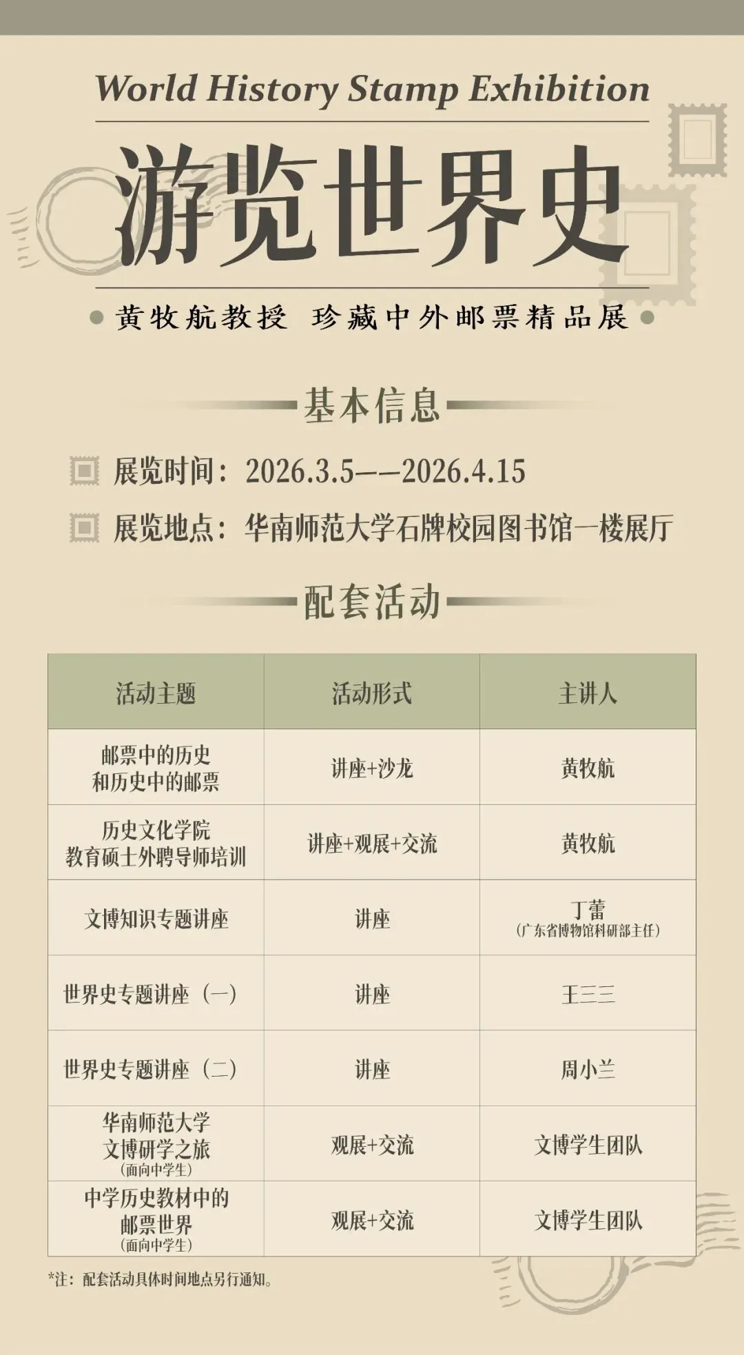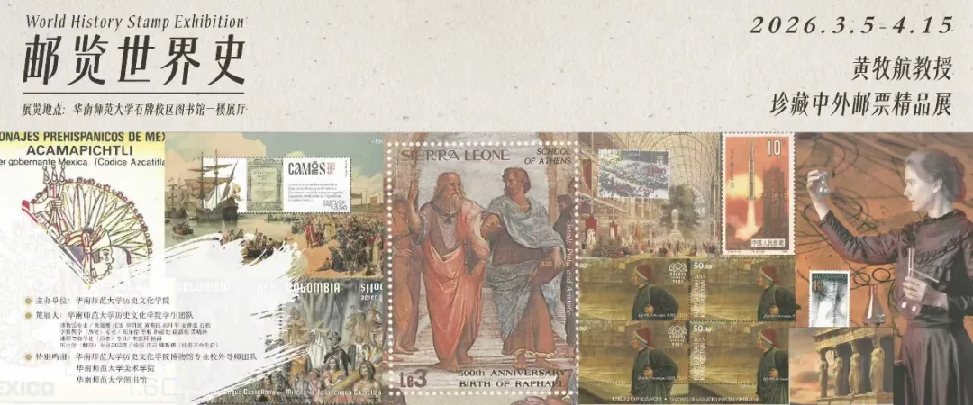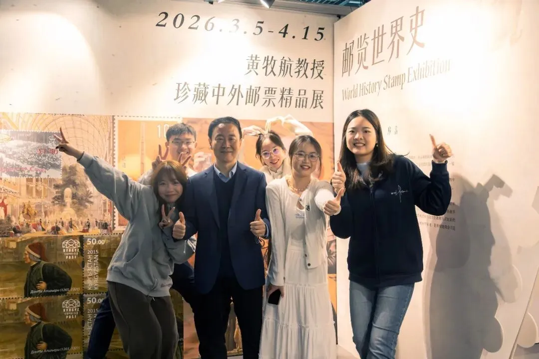 展览由历史文化学院主办,将持续至4月15日。展览分为“起源与发展”“分立与交融”“探索与发现”“变革与分流”“战争与和平”五个单元,展出黄牧航教授多年珍藏的中外邮票,展现人类文明的交流与演进。