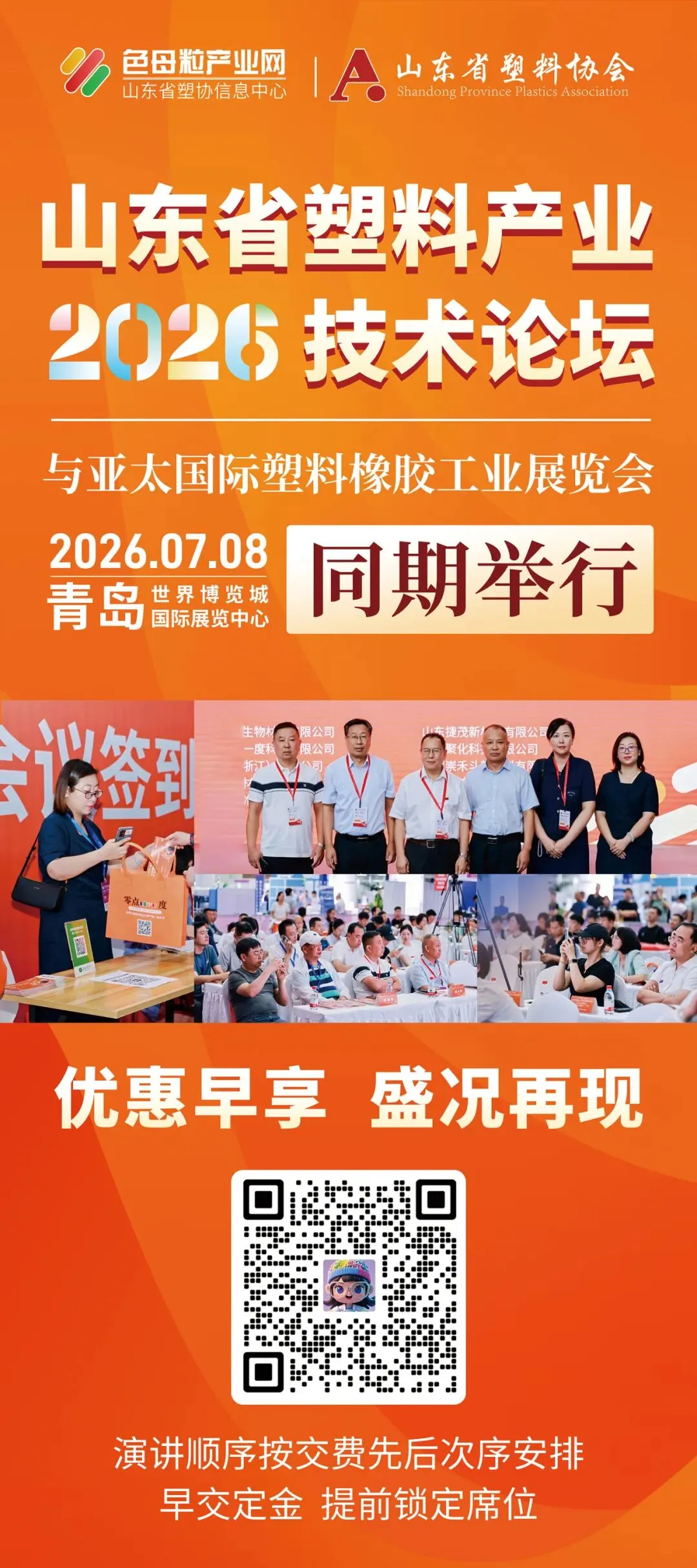 第23届亚太橡塑展(青岛站)将于7月8日到11日青岛国际博览中心举办,作为同期核心会议,色母粒产业网主办的“山东省塑料产业2026技术论坛”将同步举行,现面向行业全面招商!论坛聚焦塑料产业技术升级、高质量发展,汇聚行业精英、优质资源,是品牌宣传、业务拓展、人脉积累的绝佳平台,有意向的企业可尽快联系我们抢占席位,更有机会获取期刊、广告等意想不到的福利政策!