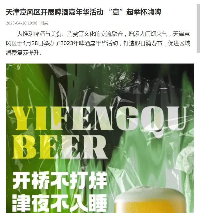 【媒体关注】天津意风区开展啤酒嘉年华活动 “意”起举杯嗨啤