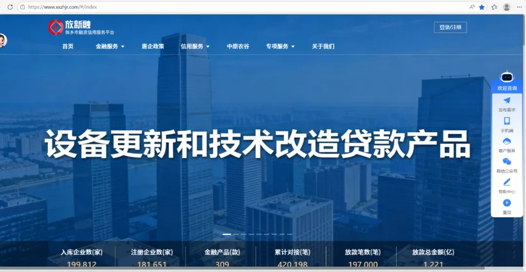 1. 登录“放新融”平台:访问新乡市融资信用服务平台,进入“设备更新和技术改造”板块