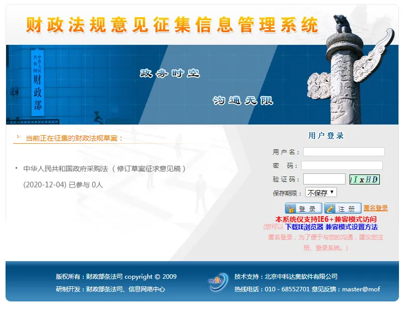 为贯彻落实《深化政府采购制度改革方案》有关要求,完善政府采购法律制度,财政部研究起草了《中华人民共和国政府采购法(修订草案征求意见稿)》,现向社会公开征求意见。任何单位和个人可以在2021年1月5日前,通过以下途径和方式提出意见:1.通过中华人民共和国财政部网站(网址:http://www.mof.gov.cn)的“财政法规意见征集信息管理系统”(网址:http://lisms.mof.gov.cn/lisms)提出意见。2.通过信函方式将意见(一式两份)寄至:北京市西城区三里河南三巷3号财政部条法司(邮政编码100820),并在信封上注明“《中华人民共和国政府采购法(修订草案征求意见稿)》征求意见”字样。