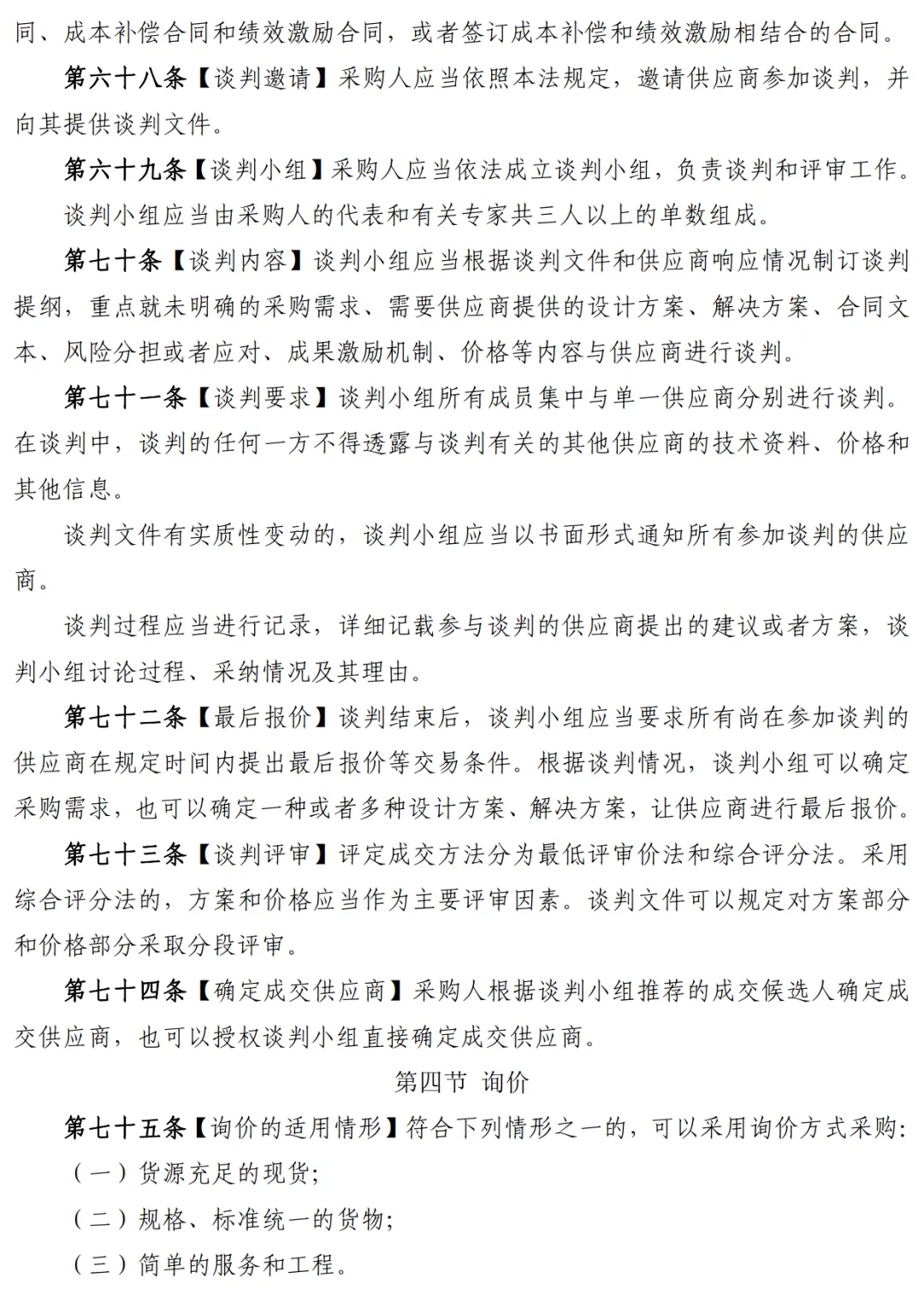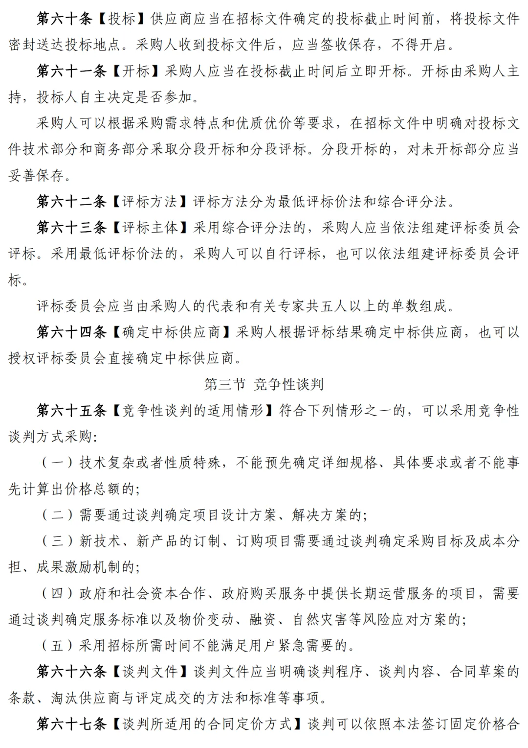 其中,值得关注的是,第六十三条,评标主体方面,采用综合评分法的,采购人应当依法组建评标委员会评标。采用最低评标价法的,采购人可以自行评标,也可以依法组建评标委员会评标。评标委员会应当由采购人的代表和有关专家共五人以上的单数组成。