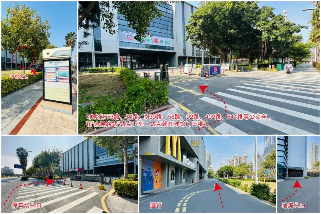 • 公交:可乘坐753路、30路、M39路、58路、92路、402路、641路等公交车,在“会展路站”站点下车,站点就在球馆门口哦!