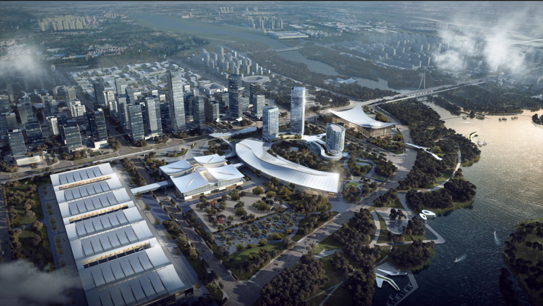 会展中心总建筑面积约28万㎡,展览中心规划11个展厅,室内展览面积10万㎡,室外3万㎡,可搭建5000 余个国际标准展位。