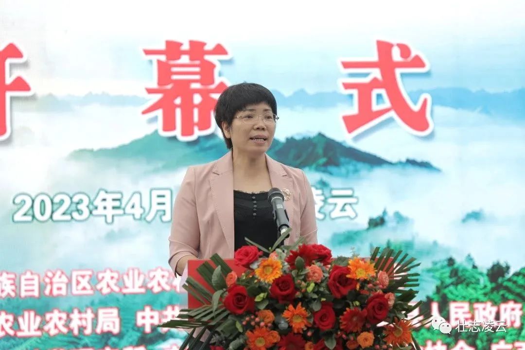4月28日,2023年广西茶叶春季交易会在凌云县茶文化街开幕。自治区农业农村厅二级巡视员江丽海出席,并宣布2023年广西茶叶春季交易会开幕。市政协副主席黄彩雪在开幕式上致辞,县长谢旦杏主持开幕式。