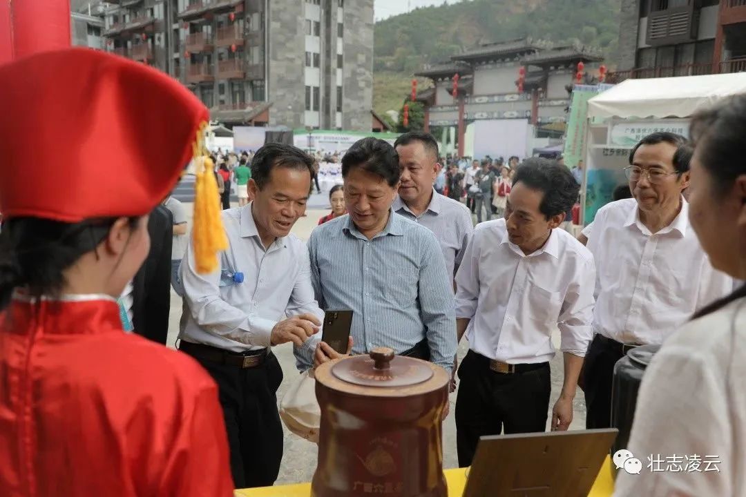 当天,出席2023年广西茶叶春季交易会的领导、嘉宾还参观茶叶展,体验展会的热闹气氛,了解参展茶企情况,品尝凌云白毫茶、凌云美食等。