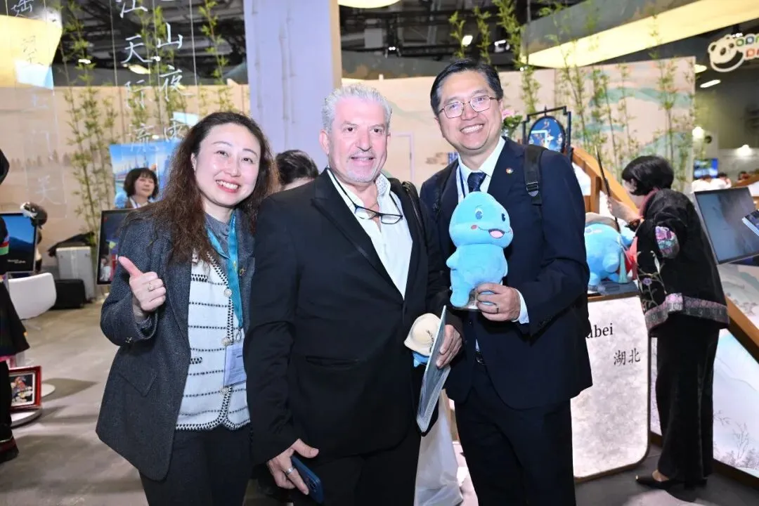 湖北展区整体设计延续了鲜明的荆楚风格。展会期间,湖北省文化和旅游厅相关负责人与湖北省中国旅行社、湖北省海外旅游集团、湖北峡州国旅、十堰亨运文旅等多家重点旅游企业负责人积极对接全球旅行商,在去年5条世界级文化旅游线路基础上,今年升级推出7条精品线路,包括“神武峡”国际生态旅游线路、“赤黄红”荆楚文化旅游线路、“赛博武汉”城市漫游、长江国际黄金旅游带精品线路、荆楚文化溯源之旅、烽火三国主题旅游线路、湖北瑰丽地貌之旅,全面展示湖北丰富的文旅资源。