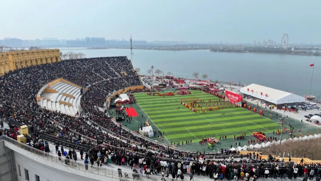 ▲2026年“塞上非遗韵·红火中国年”宁夏社火展赛决赛在览山公园上演