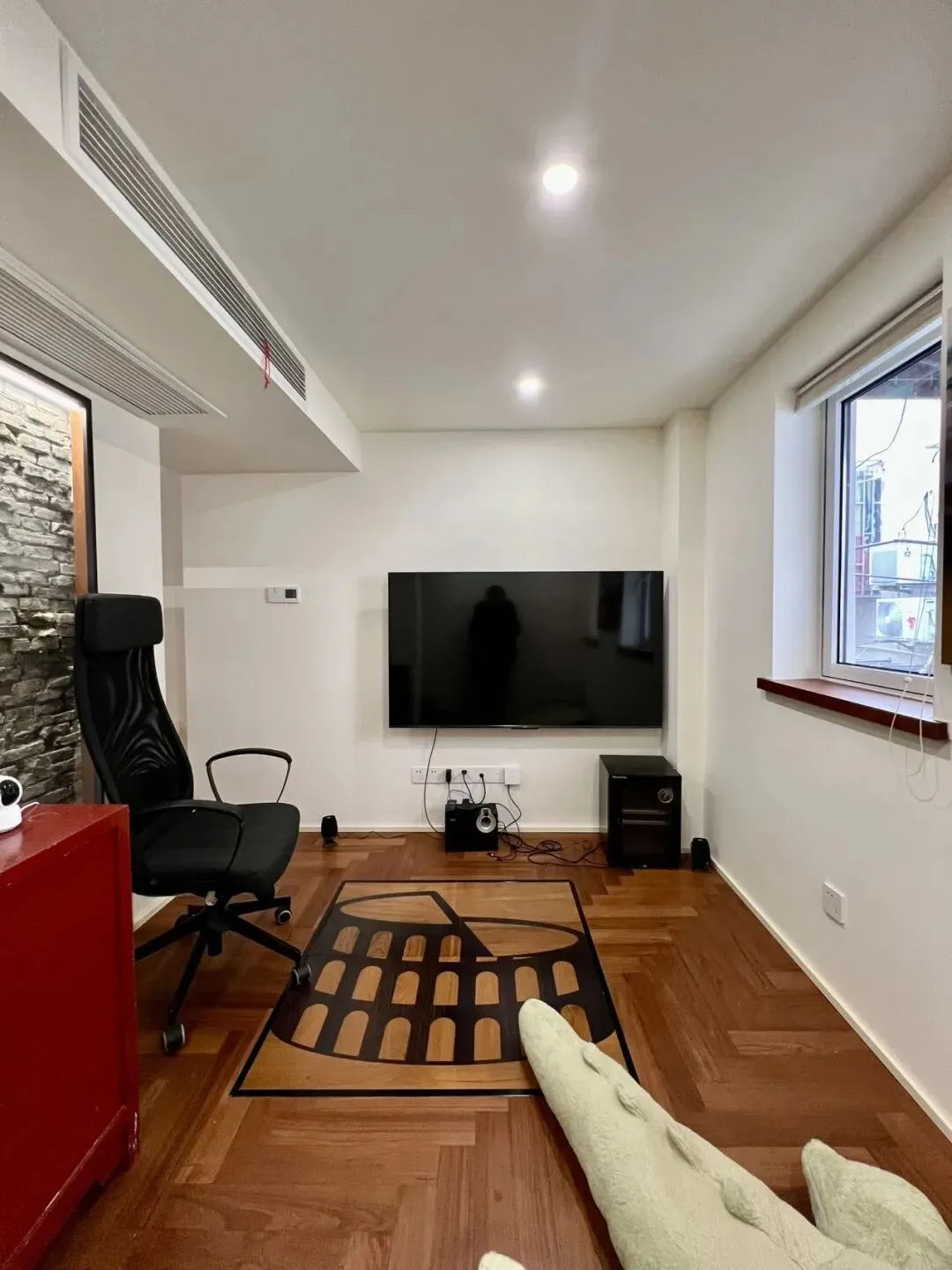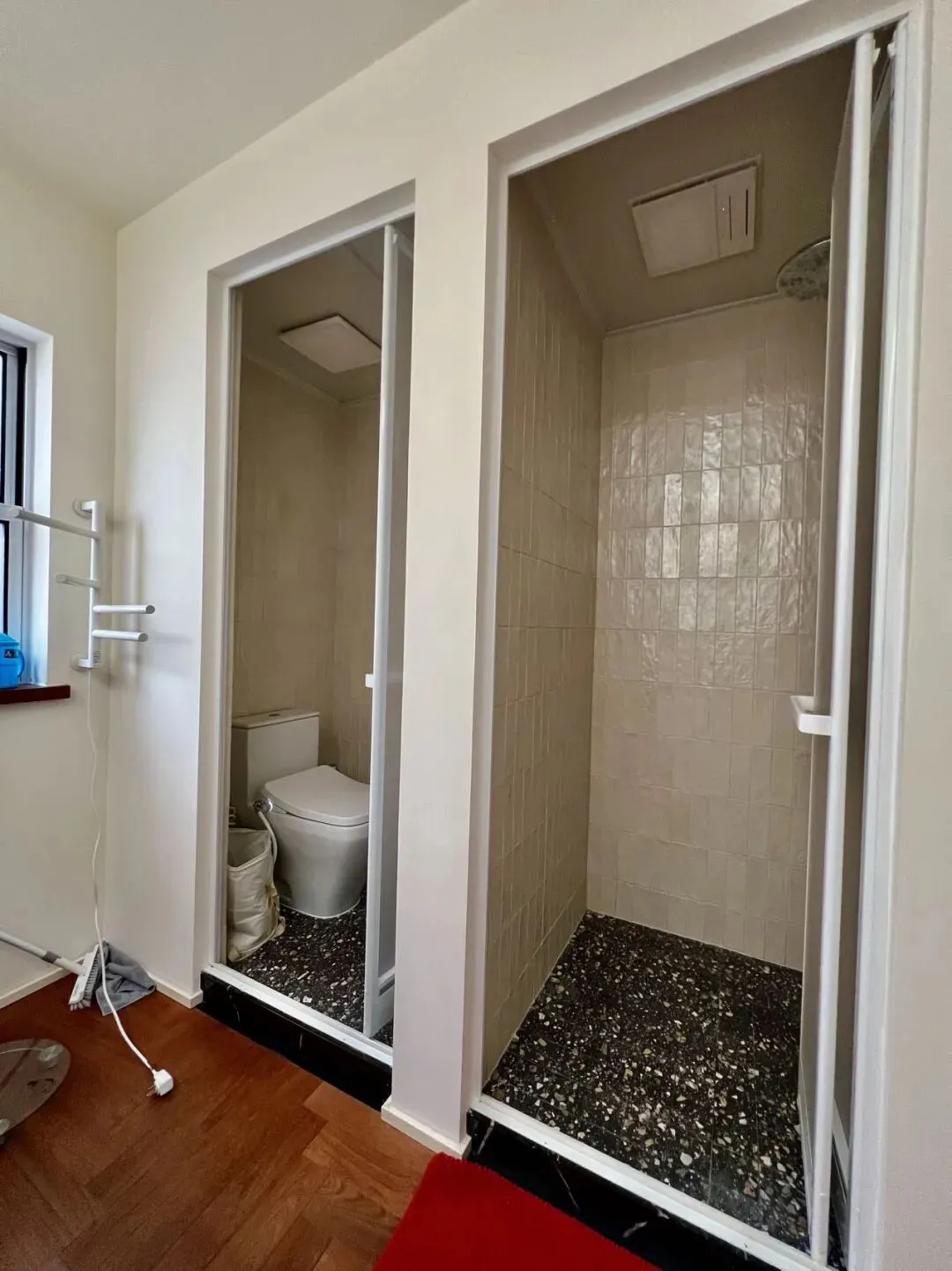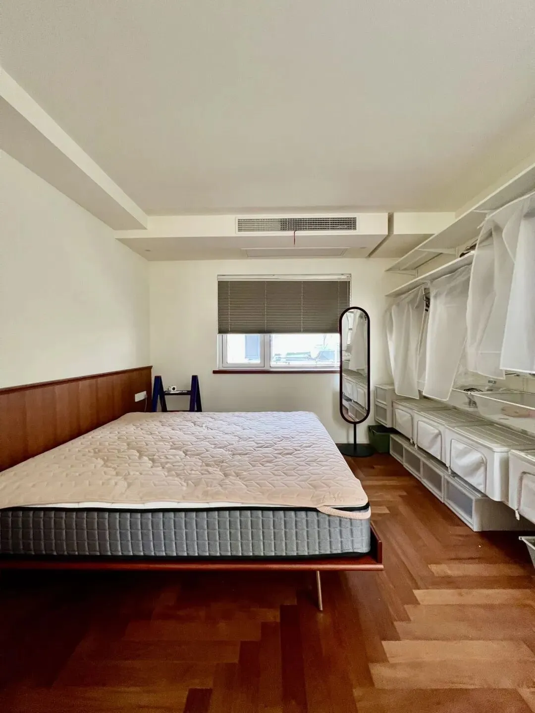 三楼整层做了一个套房,房间朝南旁边做了正面的衣柜收纳。卫生间干湿分离。