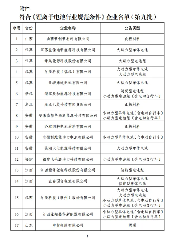 附件:符合《锂离子电池行业规范条件》企业名单(第九批)