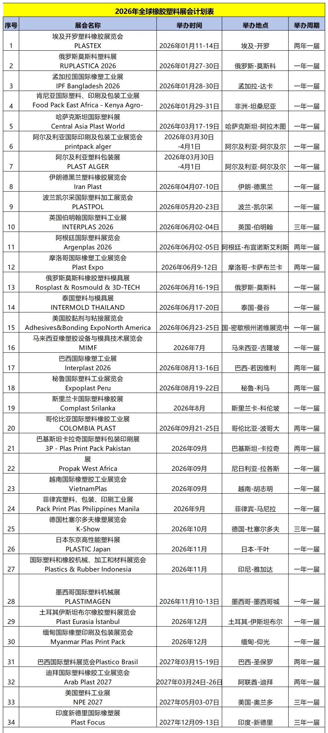 2026年全球橡胶塑料展会计划表