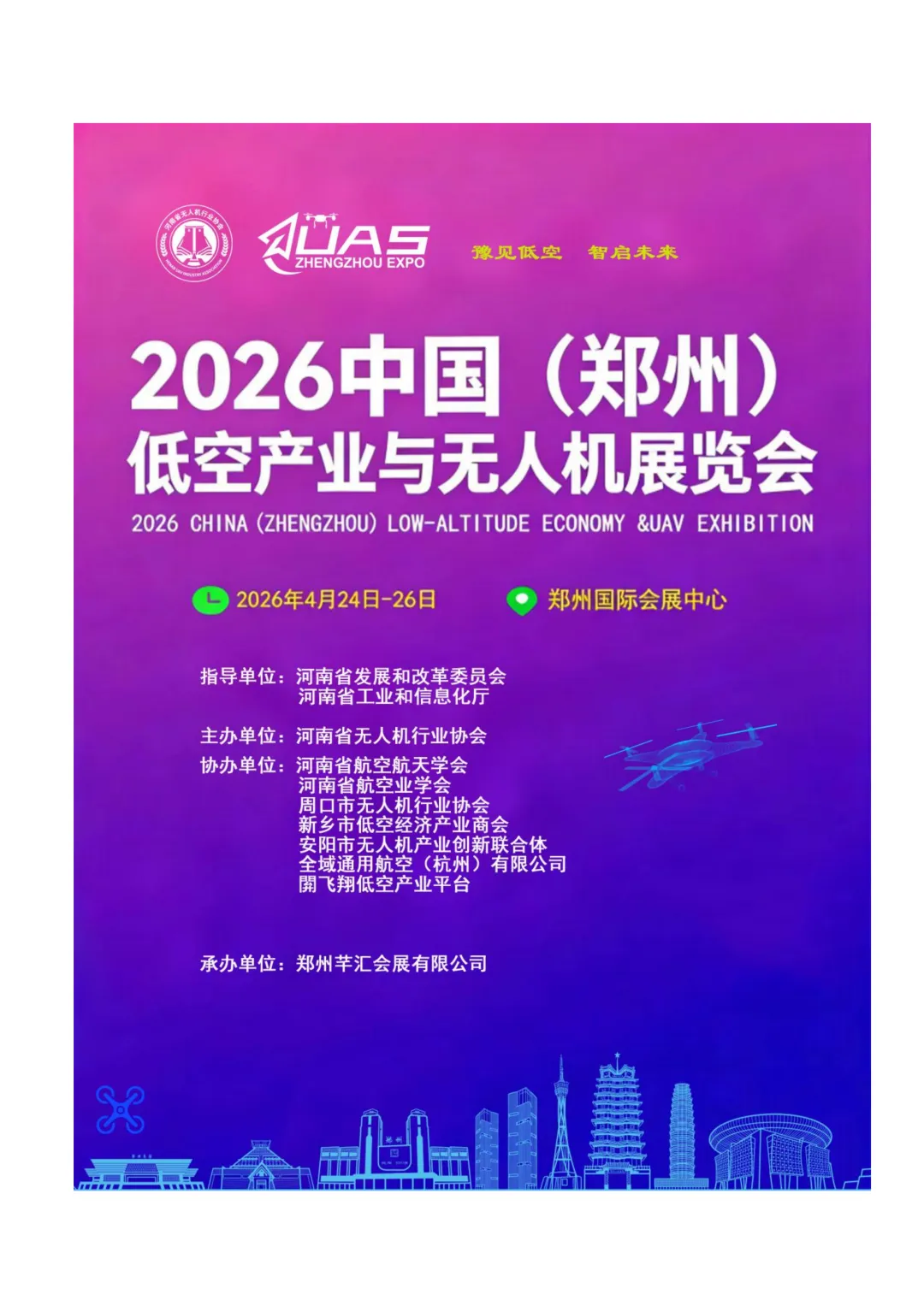 2026中国(郑州)低空产业与无人机展览会,4月24日-26日在郑州国际会展中心举办,期待您的参与!