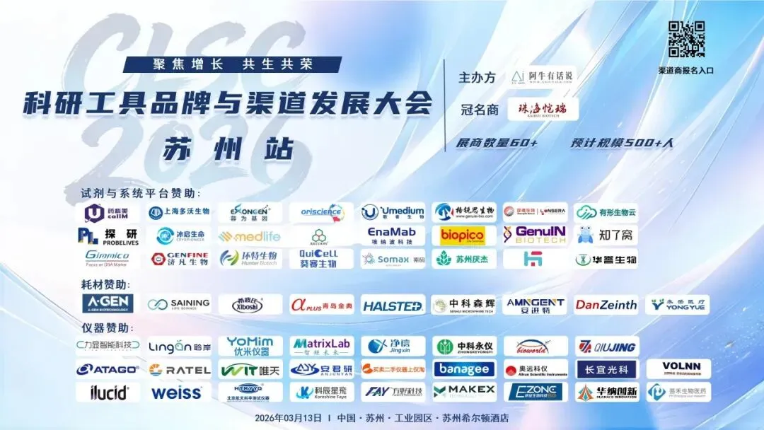 3月13日,苏州工业园区将同时迎来两场行业会议:一场聚焦生物工艺,一场聚焦生命科学科研工具渠道招商——没错,后者就是我们主办的CLSC 2026·苏州。