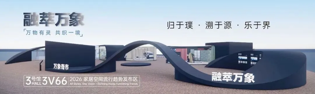 ? 趋势与发布:本届展会还重磅携手全球权威趋势机构WGSN,联合打造沉浸式立体趋势实验室,以“融萃万象”为年度主题,设立「归于璞、溯于源、乐于界」三大板块与六大情景空间呈现材质自然回归、工艺摩登重塑、色彩跨界玩趣。让参观者抢先掌握2026全球家居流行趋势和行业数据,让设计决策有据可依。
