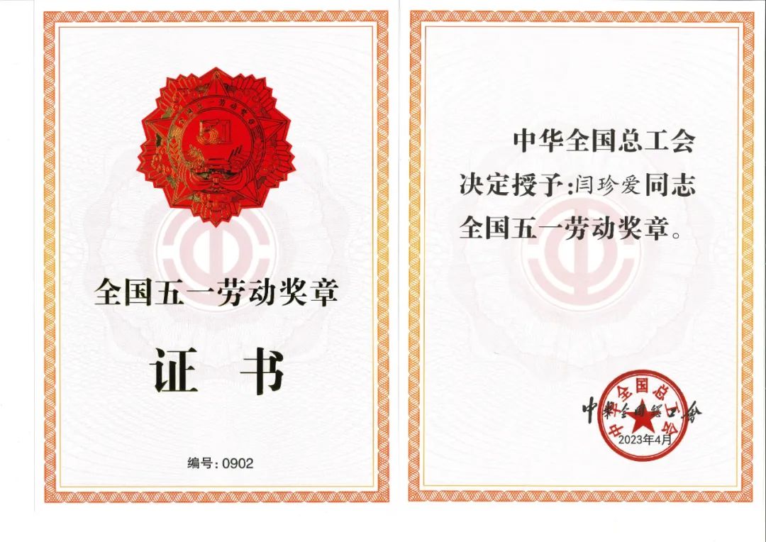 甘肃红川酒业有限责任公司员工闫珍爱荣获“全国五一劳动奖章”。
