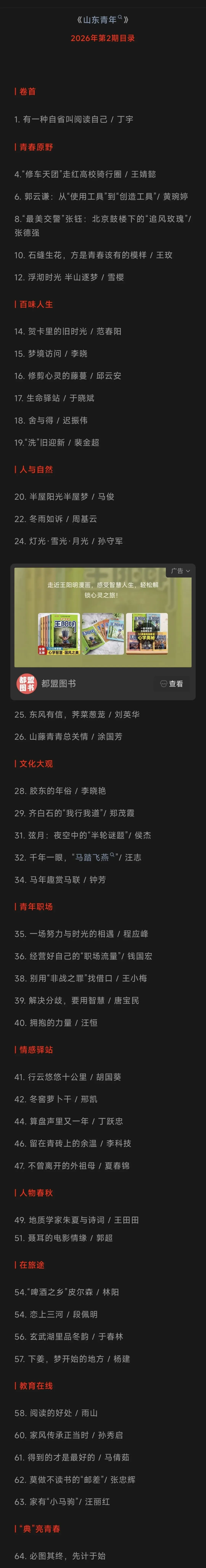 【名刊会展】《山东青年》2026年第2期封面、目录及投稿邮箱