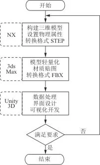 生产线的三维模型是对实体属性的反映,其对可视化的效果有很大的影响,同时模型的质量也影响着数字孪生可视化系统与用户的交互性,根据对系统的整体设计规划,进行孪生体的构建[13]。孪生体构建流程如图2所示。