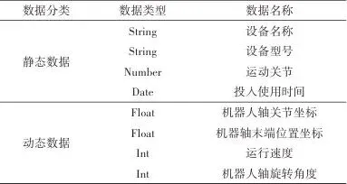 孪生数据是数字孪生系统中关键的一环,是虚拟模型和物理实体虚实交互的基础。本文基于U字型加工生产线结构,选取ABB IRB120型号机器人,其敏捷、紧凑、轻量的特点适配于本文生产线。以机器人为例,分散的数据不能让用户直观了解生产线的同步运行信息,通过数据处理实现数据可视化,使所需孪生数据在可视化场景中可以实时更新。 机器人数据包括静态数据与动态数据,机器人型号、尺寸等属于静态数据,机器人6个轴的角度、速度、加速度、机器人末端位置等属于动态数据,ABB机器人数据如表1所示。 表1ABB机器人数据