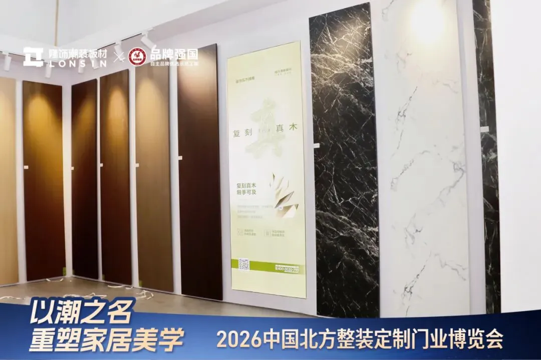 3月6日,2026第十一届北方整装定制门业博览会在石家庄国际会展中心正式拉开帷幕。隆饰潮装板材携潮装美学空间惊艳亮相,开展首日便迎来众多新老朋友驻足品鉴。