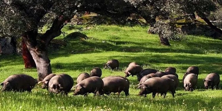 伊比利亚黑猪:牧场放养 + 100% 橡果喂养,富含健康的不饱和脂肪酸