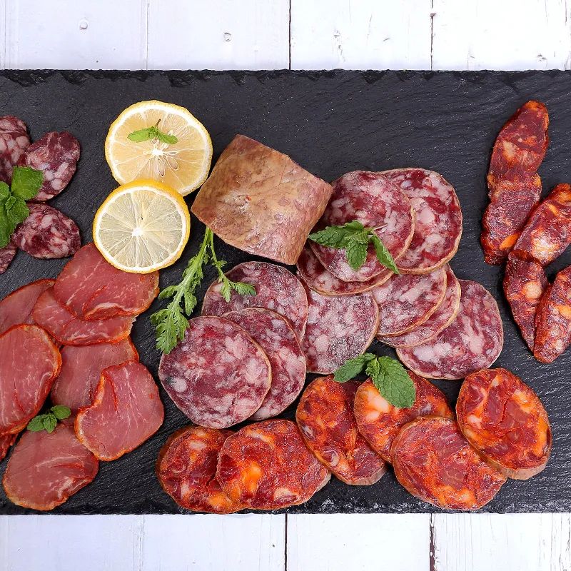 西班牙香肠种类繁多,克里索香肠和萨尔齐琼香肠是其中的明星产品,西班牙肉肠拼盘中不可或缺的存在。这 2 种香肠所用的猪肉都是至少有 50% 纯种血统的伊比利亚黑猪,这样才能有「伊比利亚」之名。
