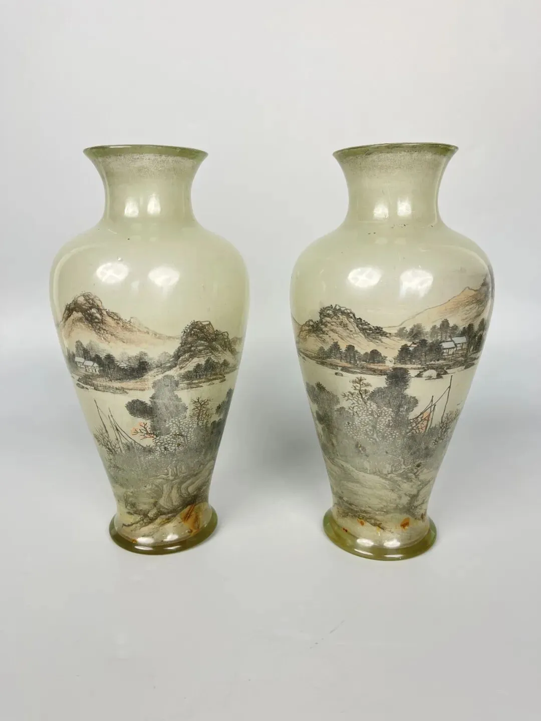 大清内部山水画对瓶