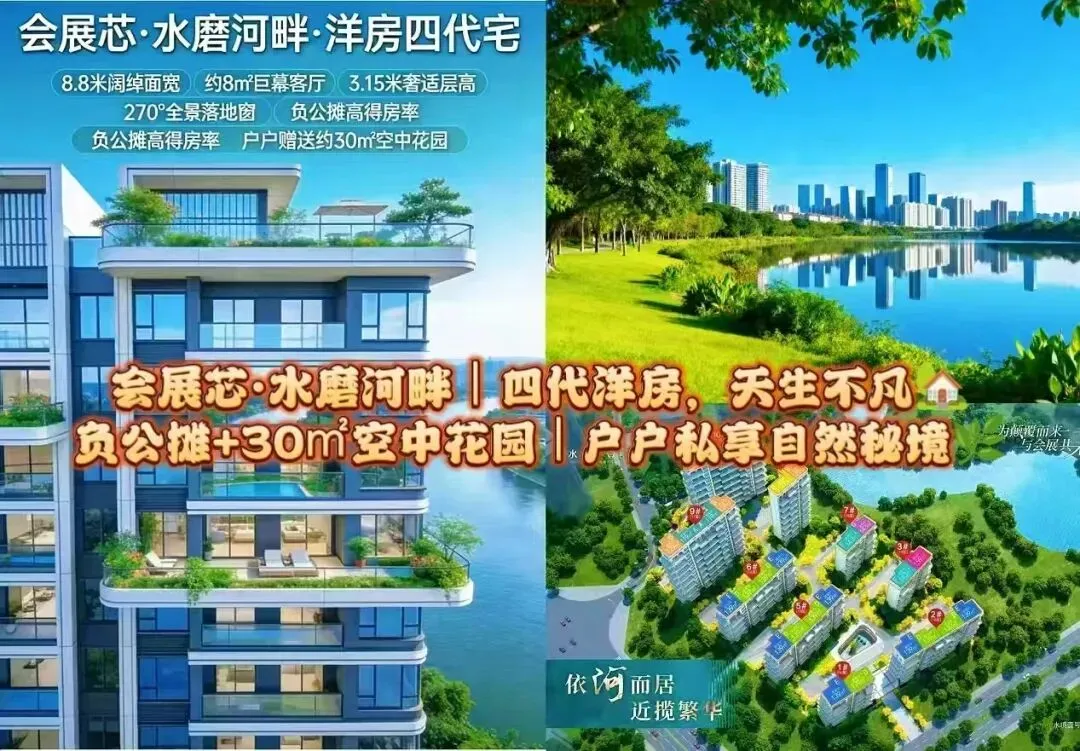 会展必选四代宅洋房:水境壹号·会展芯·水磨河畔·地段优秀配套齐全139-160平米大横厅景观房270°观景8米多大横厅