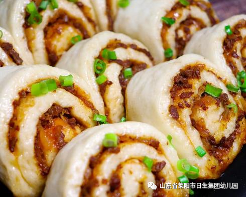 肉卷、精肉大葱馅、红烧茄子、金银米粥