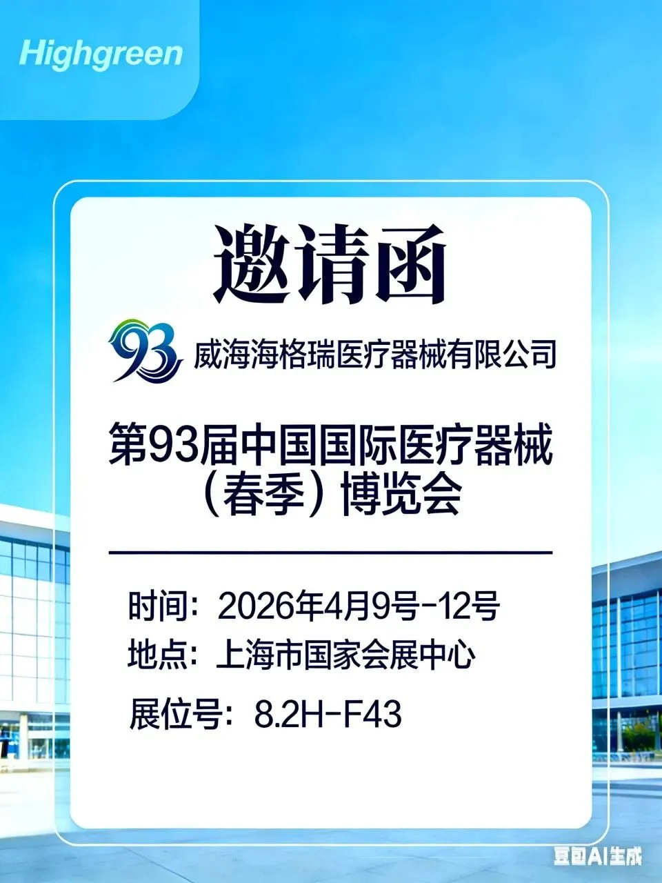 海格瑞医疗消息,第93届中国国际医疗器械博览会(CMEF)将于2026年4月9日至12日在国家会展中心(上海)举行。海格瑞医疗诚邀业界同仁莅临其位于8.2号馆F43的展位,共同探讨急救设备和智慧康复新趋势。