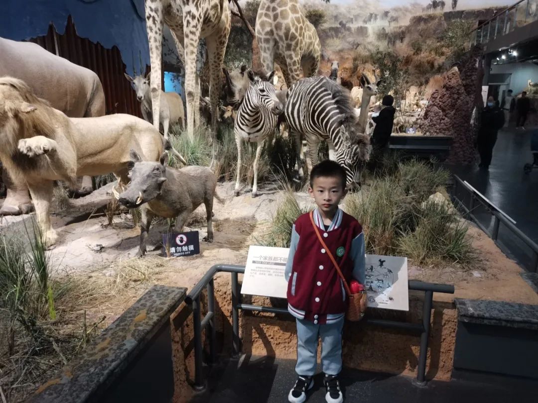 接着同学们来到了非洲野生动物大迁徙馆。该馆以大型实景的方式生动再现了非洲野生动物大迁徙这一生物界的壮丽史诗,让观众感受到非洲大陆的狂野之美,聆听自然谱写的生命赞歌。当同学们听到动物模型都是跟实物1:1塑造,且动物的毛发都是取自真的动物身上,不禁感慨,难怪如此逼真。动物们为寻找水源和食物,克服无数自然灾难横跨非洲大陆的伟大壮举,也让同学们重新定义和诠释自己的研学之旅。
